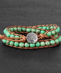 Vintage Emperor Bracelet Beaded Adjustable Cowhide Handmade Braided